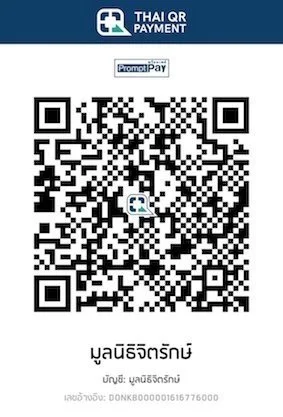 สำหรับผู้ที่มีบัญชีธนาคารในประเทศไทย กรุณาบริจาคเงินโดยบัญชีพร้อมเพย์ (PromptPay) หรือ โอนเงินบริจาคจากบัญชีธนาคารในประเทศไทยของท่าน